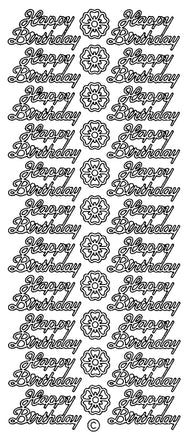 Peel-Off Stickers - Happy Birthday (starform 300) available in Gold, Silver, Black & Multicolour.