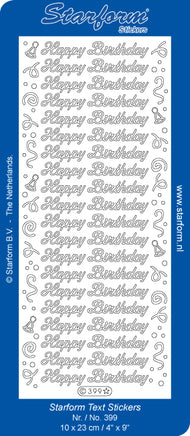 Peel-Off Stickers - Happy Birthday (starform 399) available in Gold, Silver, Black & Multicolour.