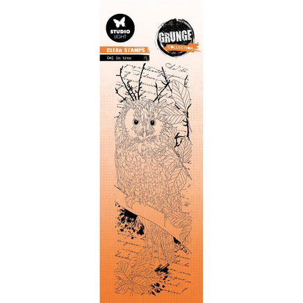 Studio Light Clear Stamp Grunge Collection nr.447 Owl in a Tree, size: 68mm x 203mm